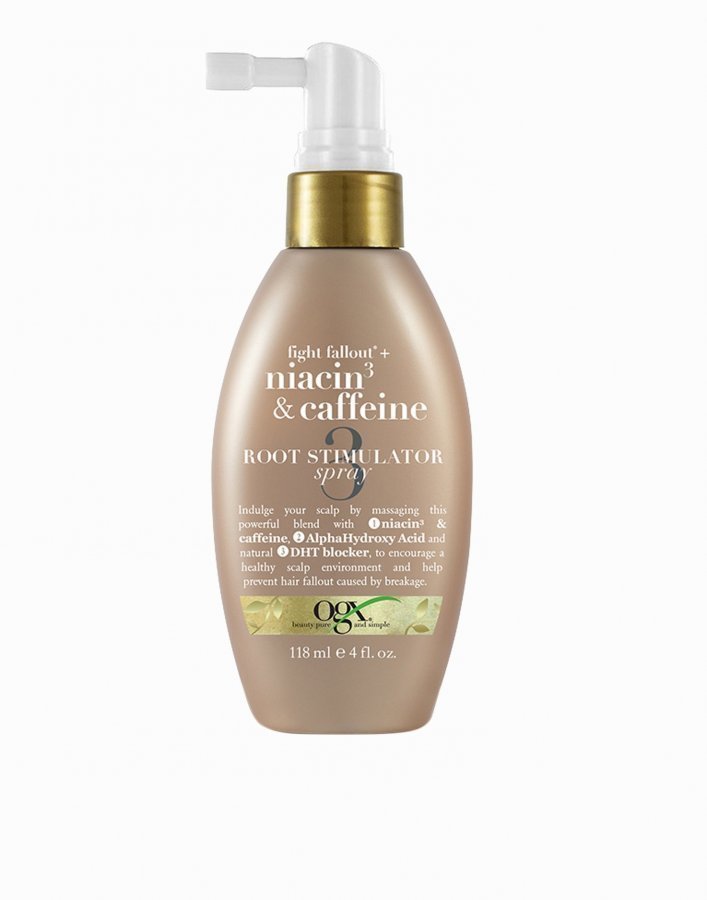 OGX Niacin & Caffeine- sarjalla on koostumus joka on erityisesti esille otettu stimuloidakseen hiuskasvua. Se vahvistaa ja suojaa hiuksia päivittäiseltä kulutukselta. Sarja sisältää Shampoon, Hoitoaineen ja Root Stimulator Suihkeen. Koostumus sisältää: • AHA-happoja jotka työskentelevät poistaakseen kuolleita ihosoluja• Niacin ja koffeiini stimuloi verenkiertoa • Saw Palmetto – luonnollinen DHT-estäjä, joka on hormooni joka aiheuttaa kaljuuntimisen Näin käytät sitä:Kun sinulla on pestyt ja oyyhekuivat hiukset, syihkuta heti hiusjuureen osio kerrallaan. Hiero sisään jakaaksesi tuotteen. Ei huuhdella. Käytä kaksi kertaa päivässä jotta saisit parhaamman tuloksen. Käytä stailaus tuotteita ja stailaa hiukset normaalisti. Varoitus: Vältä kontaktia silmien kanssa. Jos ainetta tulee silmiin, huuhtele välittömästi. Tuotenumero: 228677-0108. Väri: Läpinäkyvä. Kategoriaryhmä: Kauneus / Hiustenhoito & muotoilutuotteet / Hiusnaamiot & -öljyt. Koot: Yksi koko. Kohderyhmä: Naiset.